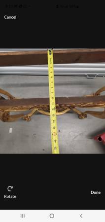 Baroque style / rococo gilt wood console table with marble top. Perfect for a luxurious foyer and entry table In excellent condition. See photos for dimensions. I have a mirror that matches this...