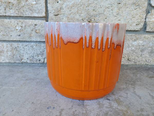 Large MCM Orange Drip Ceramic Flower Pot - antiques - by owner -...