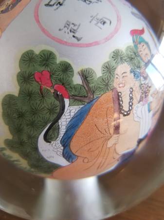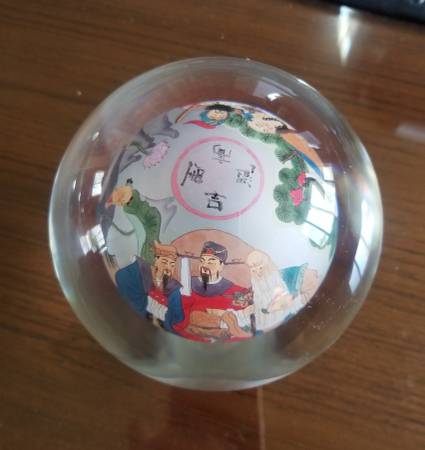 Antique Chinese Reverse Painted Glass Ball / Paperwight - antiques -...