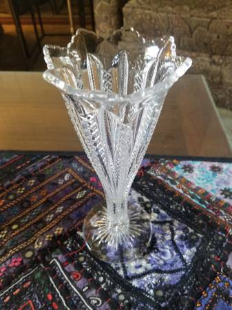 Antique Glass Flower Vase Not sure if its cut glass or pressed glass, but its very old, pre dates 1950's, passed down through the family 10" tall x 4" across Prefer email or text messages, no calls...