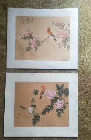 Beautiful Pair of Antique Oriental Watercolors They could be prints but I believe they are original watercolors I don't know the country of origin (Chinese /Japanese), maybe someone who knows the...