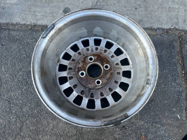 One 15 inch stock aluminum wheel from a foxbody mustang. 4x108mm - $80 (Montebello)