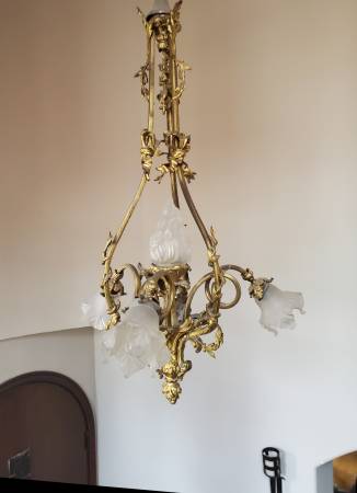 This had been hanging in the entry to my house for years and I finally replaced it with something more thematically appropriate for my Spanish style home. It is interesting to see that there is an extremely similar chandelier on eBay in France listed for $2100 plus customs and shipping. See this link: https://www.ebay.com/itm/326241009818