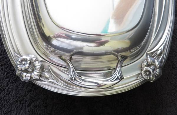 Antique Art Nouveau Silver Plate Serving Bowl With Lid. Raised Floral Motif.