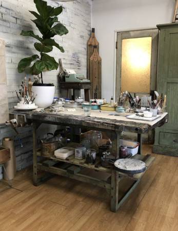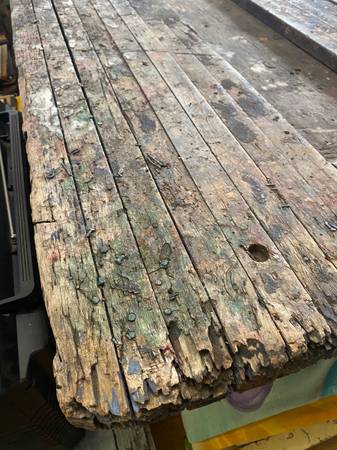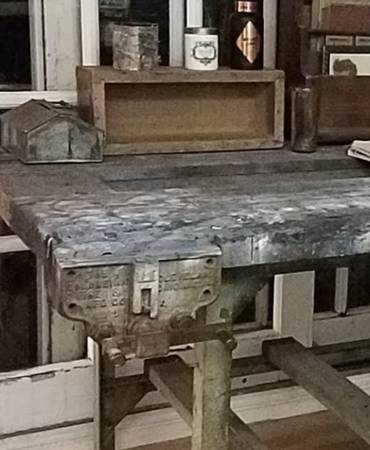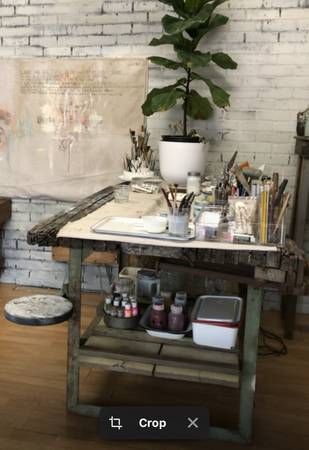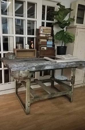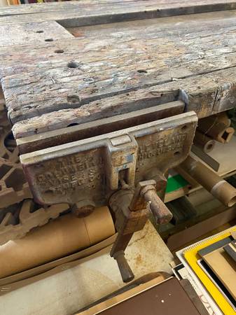 Vintage industrial workbench with swivel stool and 2 vices Perfect for art studio, kitchen island Farmhouse shabby chic vintage If interested