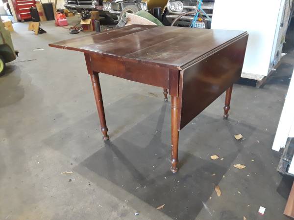 Drop leaf table, estimated to over 100 years old, has been in the family forever. This table is 39 inches wide by 32 inches long, with a 12 inch leaf, and two drop leaf of 14 inches. At full extension it is 39 by 72. Open to offers, Thanks for looking. show contact info