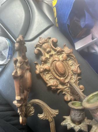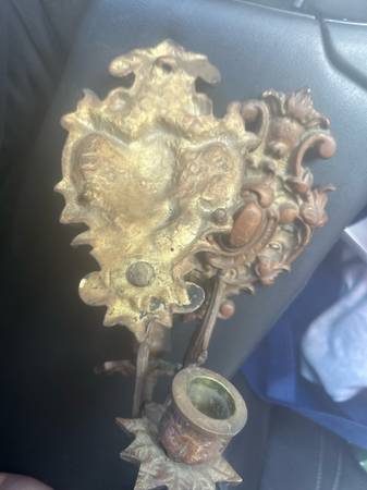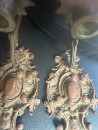 Been in the family for 100 years. Old candle sconces not sure what they are made out of. I am guessing bronze. Hand made no wields.