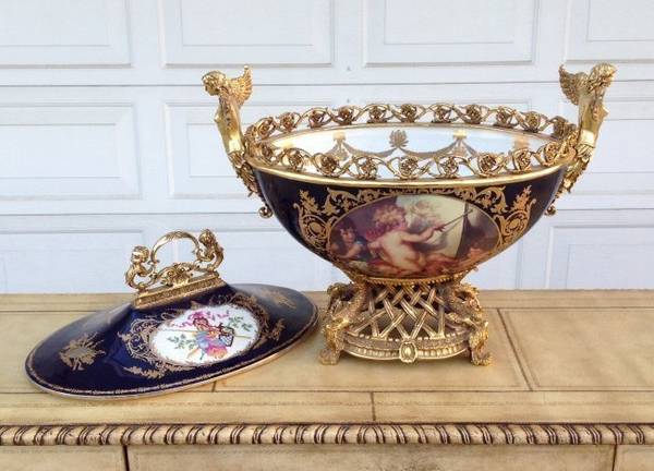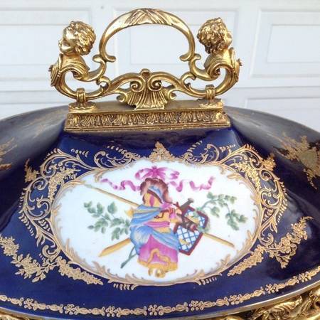 Large Serves Style Tureen W/ Bronze Mount and Cover. 22"x23"x13". Cash only.