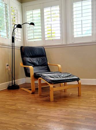 Sleek and stylish Very comfy - leather is in great condition. Bent wood - sling back bouncy chair No cracks