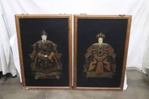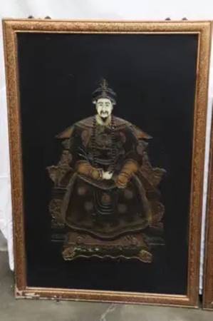 Shipping or delivery available. Pair Chinese large wall panels overlay with emperor and empress portrait in high relief, 38.3"x24.3" ea