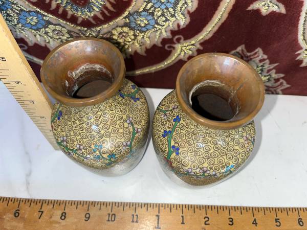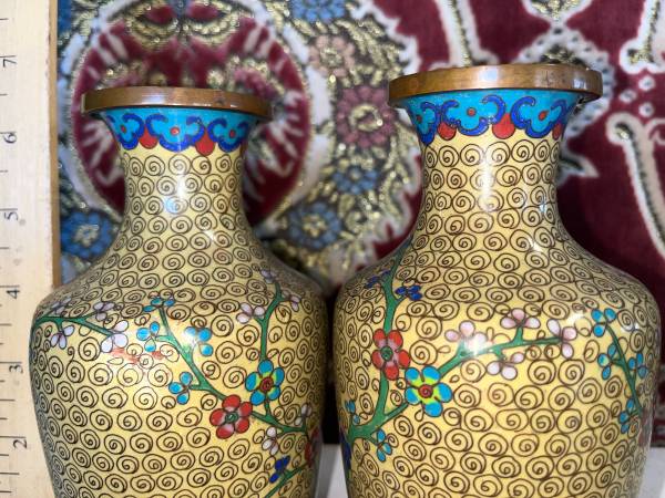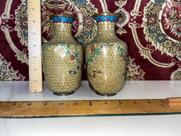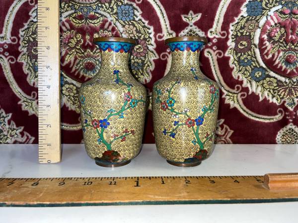 See last pic for small debt to one of the vases. Hardly noticeable from a short distance.