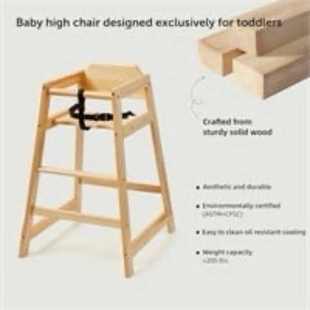 Wooden Baby High Chair, Neoflavie 2 Pcs Stack-able Solid Wood Feeding Seat with 3 Point Safety Harness and 2 Pcs Baby Bibs for Restaurant & Home Use - Natural Retailer Link: https://www.amazon.com/dp/B0DB8NN3YY Retail Price: $125.99 Condition: New Open Box Condition Notes: Damage: No Functional: Yes Missing Parts/Pieces: No Original Packaging: Yes SKU: 56fefc87 NOTICE: Item Description below is a copy and paste from Amazon. No warranties or guarantees expressed below are valid. Thanks! Description: PREMIUM QUALITY MATERIAL: Your baby's safety is our top priority, our baby high chair is made of high-quality pine, which is certified by authoritative organizations to be environmentally friendly, corrosion-resistant, crack-resistant and durable, and handmade by craftsmen with more than 15 years of experience, and the structure of the product is strong enough. Passes all current ASTM and CPSC safety standards. DETACHABLE & STACKABLE DESIGN: Neoflavie dining booster seat comes in a beautiful wood color that lends a touch of modern appeal to your home decor; Thanks to the stack-able design, it saves space and is convenient for storage. In addition, its detachable design ensures easy cleaning and improved convenience. SUPER EASY TO INSTALL AND MAINTAIN: The wooden high chair comes with clear installation instructions and all accessories. You only need to follow the instructions to install the accessories step by step. When it's time to clean up, simply wipe with a damp cloth to remove any mess and keep it looking great. SATETY STRUCTURE: The structure of the baby dining chair is very stable and not easy to tip over. And the foot pad has anti-slip and shock-absorbing functions, which can effectively protect the floor and ensure the safety of children climbing. Provide a safe and pleasant environment for your children when dining. WHAT YOU GET:Your package will come with 2Pcs baby high chair and a detailed instruction manual; Neoflavie in While improving your high-quality life also strictly control the quality of the product, if you receive a product you are not satisfied, you can completely contact us to request a replacement, we immediately perform, thank you for supporting small family business. Wooden Baby High Chair, Neoflavie 2 Pcs Stack-able Solid Wood Feeding Seat with 3 Point Safety Harness and 2 Pcs Baby Bibs for Restaurant & Home Use - Natural