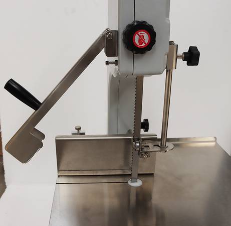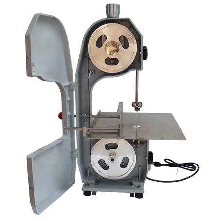 The Electric Meat Bone Saw machine could offer fine cutting accuracy and ease of use. The body is cast aluminum with large stainless steel tables. These saws are ideal for small to medium applications. Designed especially for for small and medium size restaurants, butcher shops, this upright design takes up less room. Stainless steel sliding table and fence components conveniently disassemble for easy clean-up.