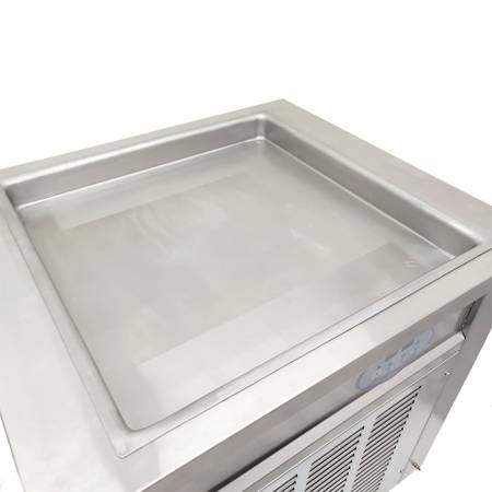 This is a 50*50 cm square ice stir-frying machine with a pan depth of 4.5 cm. You can stir-fry yogurt, stir-fry ice, etc., add fruits, nuts, candies, and make your creations more delicious. Temperature adjustable, easy to operate. When you are busy making delicious food, you can use foot pedals to help you defrost.