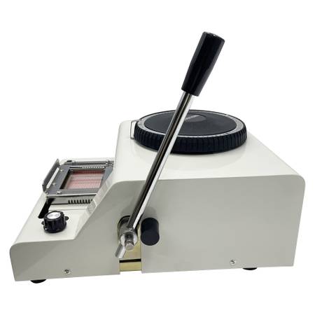 Manual code printer (imprinter) is the essential equipment of PVC card’s post production and processing.Its function is to extrude protruding or receding characters to make PVC card with identifiability and uniqueness.Our series PVC manual code printer owns reliable structure, accurate position, small volume, beautiful appearance and easy operation,which is applicable to the small batch and many varieties cards’ manufacturing for small stores, showbiz, food centers.