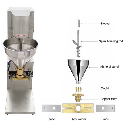 The size of the meatball(six mould): 18mm,22mm, 26mm,28mm, 30mm,32mm(the 22mm mold is installed on the machine)