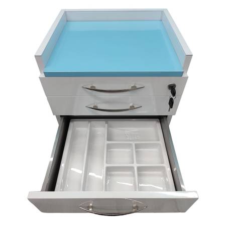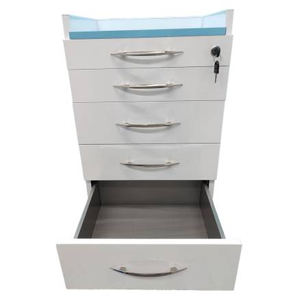 This is a professional utility cart for medical or dental instruments storage. It can keep your documents, medical records, medical devices organized and ready to touch.4 drawers with handle, easy to pull out and push back. As you can see, it is a very practical mobile storage cabinet for dental clinic or hospital .