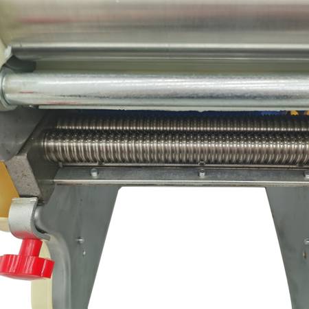 Dough adjustment roller: Pressing dough, equipped with adjusting rod, unilateral regulation, just sliding up and down, dough thickness adjustment more convenient, labor-saving, grinding out the surface more uniform thickness.
