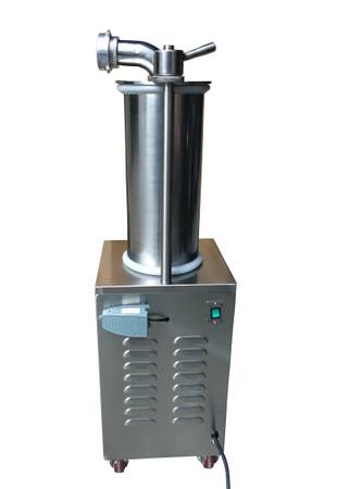The machine adopted hydraulic pressure system to fill the sausage, lowness noise, high efficiency and easy operation. To adopt high quality elements and hydraulic pressure element, they are all high quality and long life. Bowl and the body of machine are made of stainless steel, luxury and beautiful, it conforms to food sanitation. Move style body, more area to be used. To adopt the knee controlling switch, more human nature.