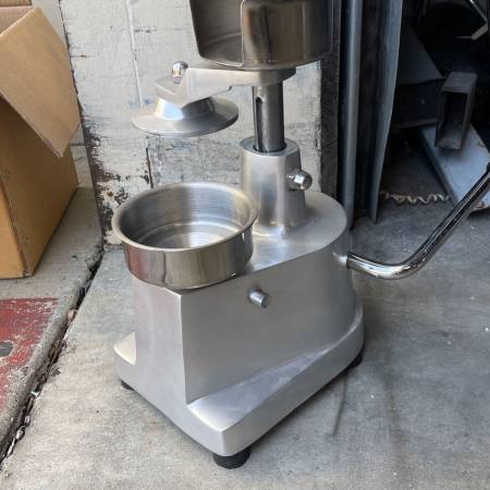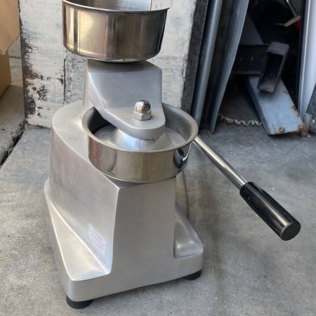Hamburger press patty maker with sturdy structure is made of cast aluminum and 304 stainless steel. The patty maker comes with a 4 in. diameter tray, a patty paper holder, and a ergonomic handle. Able to quickly make ground meat in perfect round patty with an effortless push. The burger machine is suitable for both home and commercial use.