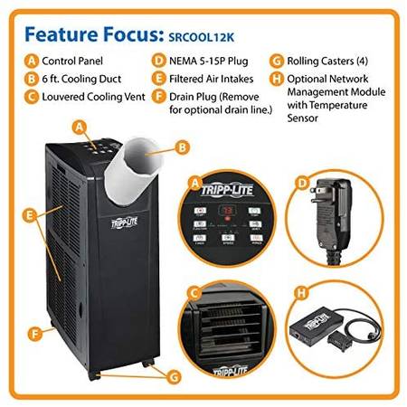 Brand New Tripp Lite Portable Air Conditioner for Server Racks and Spot Cooling, Self-Contained AC Unit, 12000 BTU (3.5kW), 120V, Gen 2 (SRCOOL12K) , Black.