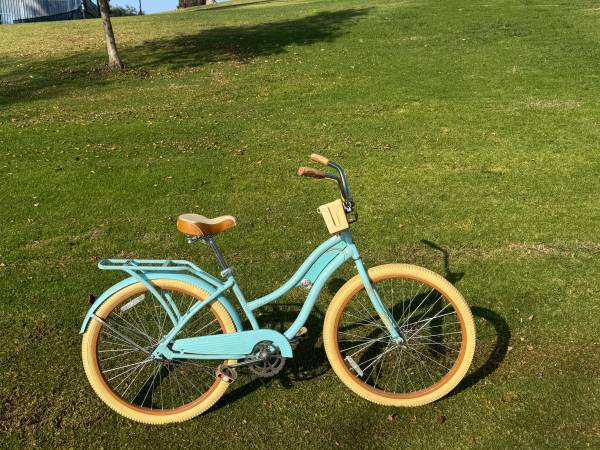 Women's Designer Cruiser Bicycle Nel Russo Model with 26 Inch Wheels, Bicycle Carrier, cup holder, Coaster Brake and "Perfect Fit" patented frame.