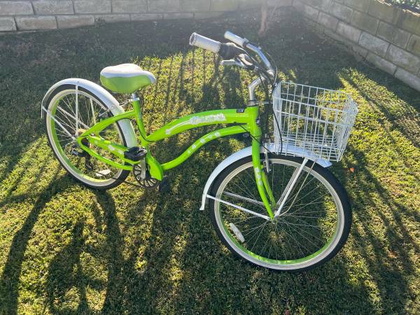 7 speed beach cruiser with shimano grip shift. Color is lime green with white trim. Hasn’t been riden in a few years and has been in the garage. All offers considered