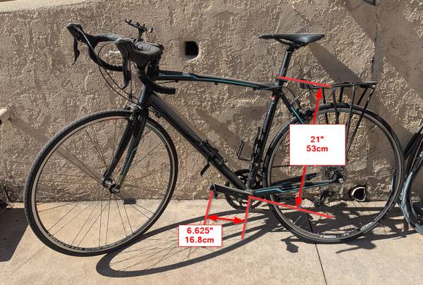 I used this bike to commute to work, but changed jobs and no longer ride it. Time to clear it out. hydroformed aluminum frame carbon fiber forks shimano sora 11-32t cassette, 9 speeds added handle...
