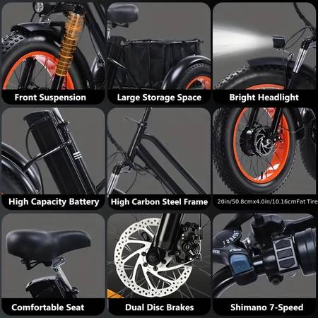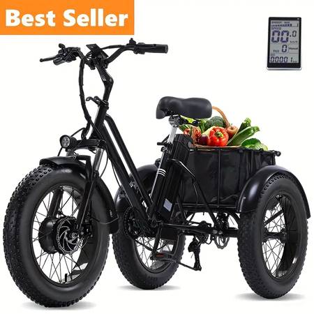 3-Wheel, Removable Battery, Up to 20 Mile Range, 20mph Max Speed, Classic Black with Basket, High Carbon Steel Frame, withfatty tires (20x4) and 7 speed gears