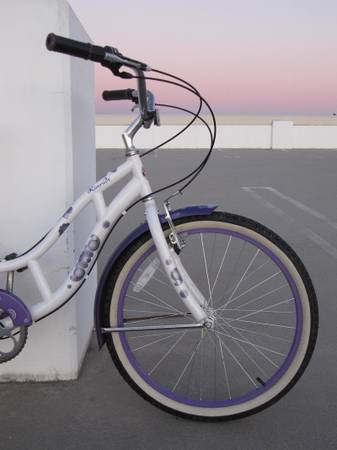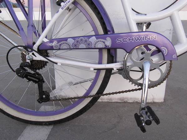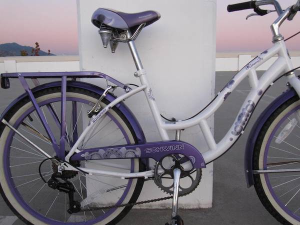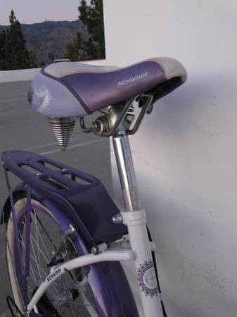 Schwinn Riverside girls cruiser bike, 7 speed. Retail $395 LIKE NEW condition (stored indoors), never ridden: 1) tires virtually new (still has thistles) 2) hand grips like new (see pic) 3) crank...