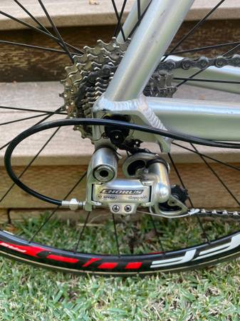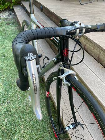 Full Campagnolo Chorus 10 speed in perfect working conditions, carbon fiber Easton CT2 seat post, SLR Sella Italia gel seat, 3T aluminum handlebar, Ritchey headset.