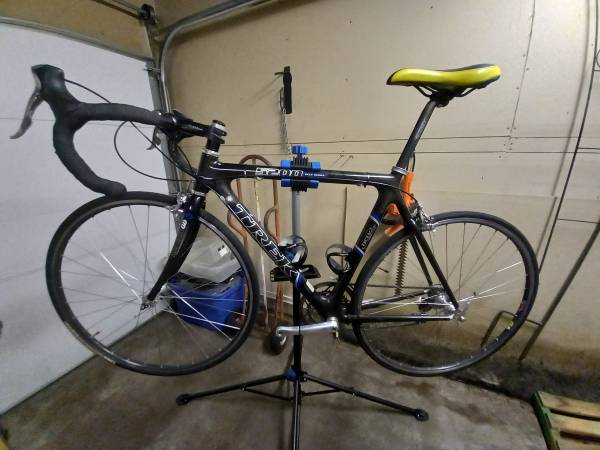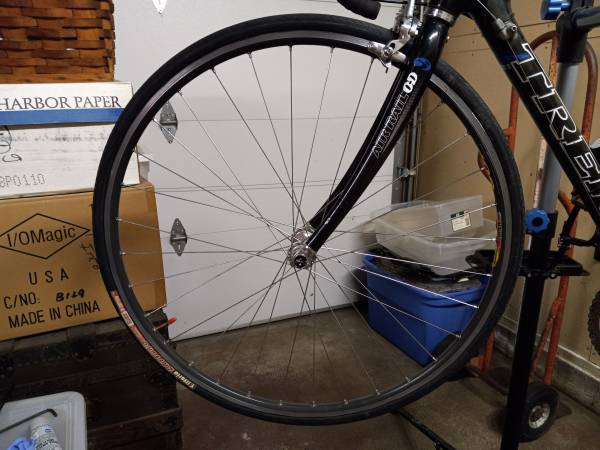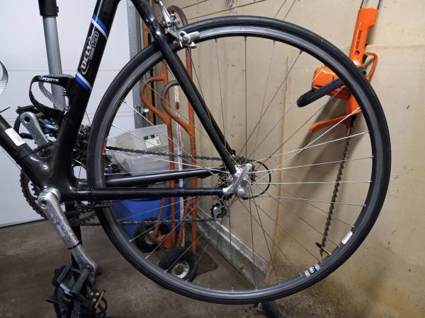 There is no damage to the frame or fork, and the bike runs very smoothly. All quality components (mostly Shimano). Includes CatEye speedometer and clipless Shimano pedals. It has an 18 speed drivetrain and 700C wheels.