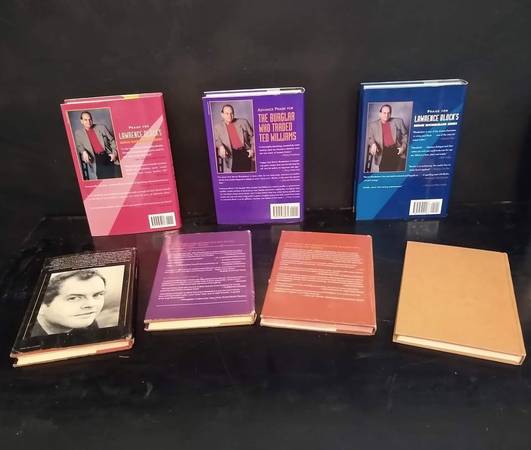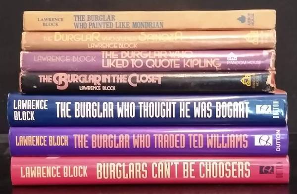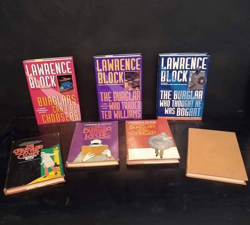 Lot of 7 hardback books by Lawrence Block featuring burglar Bernie Rhodenbarr, a New York City-based thief who excels in lock picking and breaking and entering. Addicted to the thrill it provides, Bernie's thefts are usually well-planned and executed. However, during the course of some of his burglaries Bernie encounters a dead body, usually just before the police arrive to investigate a tip. Bernie served time in prison in his youth, and since then has resolved to avoid returning which involves investigating the murder.