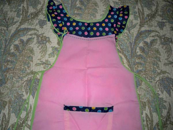 Selling a cute apron that I bought in Europe (London, I think) for $5. It is pink with dark blue polka dot trim, one pocket, and ruffled shoulders. It has never been worn and is in excellent...