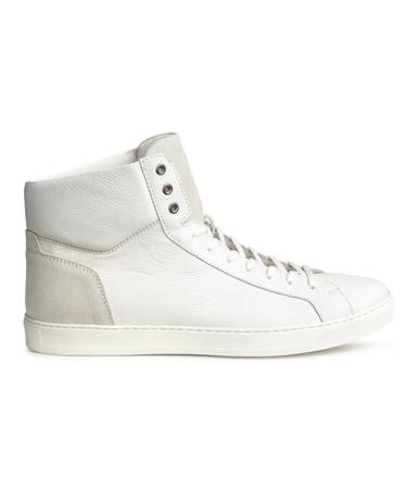 High Tops Shoes Color: White Size 8.5, 9, 10 Made in Portugal Description PREMIUM QUALITY. Leather high tops with suede details, a padded edge, and lacing at top. Mesh lining, mesh insoles and...
