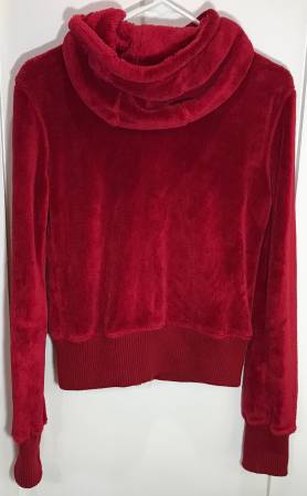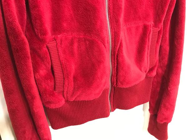 BB Dakota Red Plush Zip-Up Jacket With Hood And Pockets. Size: M