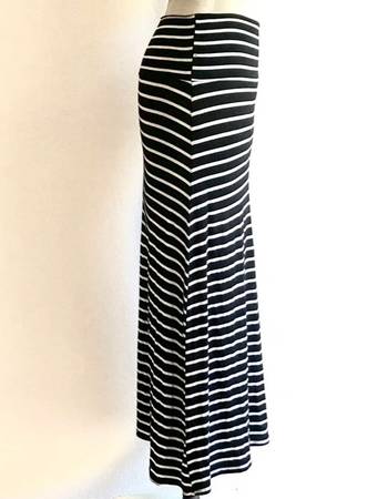 This maxi skirt features black and white stripes. It is super stretchy and comfortable! The mannequin in the photos is a size 8 for reference. Make an offer! Brand: Chris & Carol Made in USA...