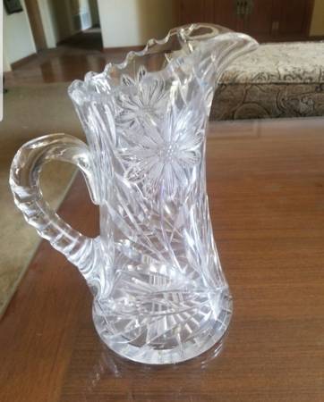 Beautiful Antique Crystal Pitcher / Vase This was my grandmother's, who lived to be a hundred. Handed down 3 generations. It's very heavy and has good color It measures about 10" tall x 6" across...