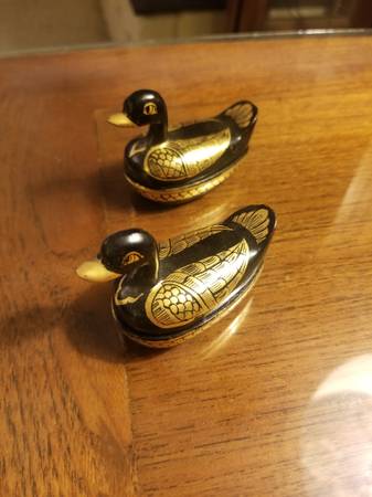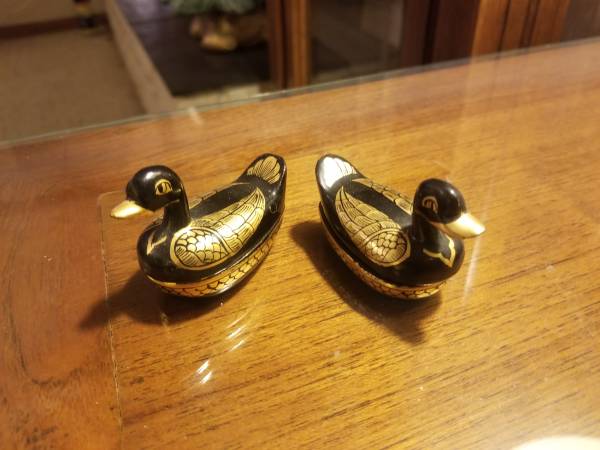 Pair of Vintage Laquerware Miniature Duck Boxes (Thai / Thailand)