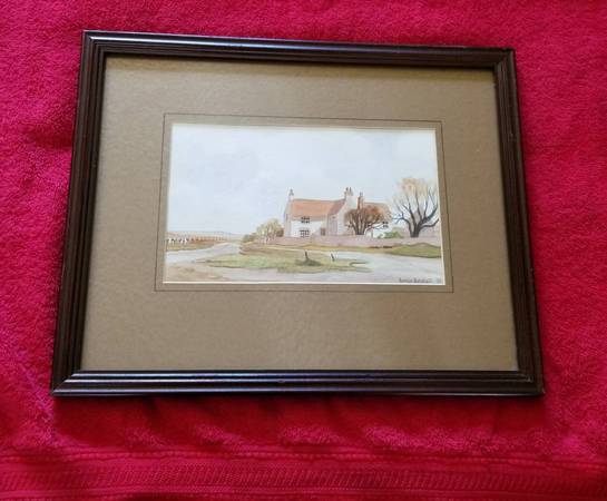 Sandie Burchell Original Watercolor Artwork Country Farmhouse. Wood frame with glass, 15" wide x 12" high. Prefer email or text messages, no calls. Check out my other posts. I have a wide variety of...