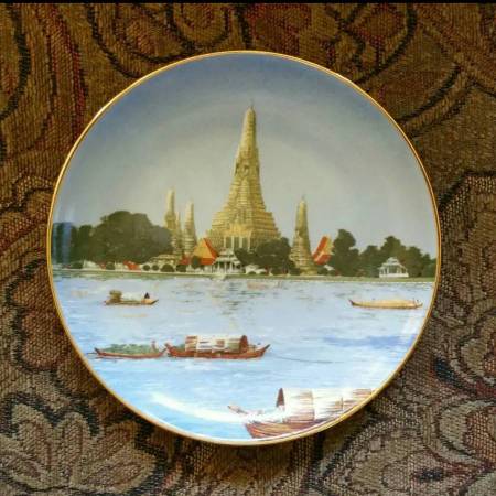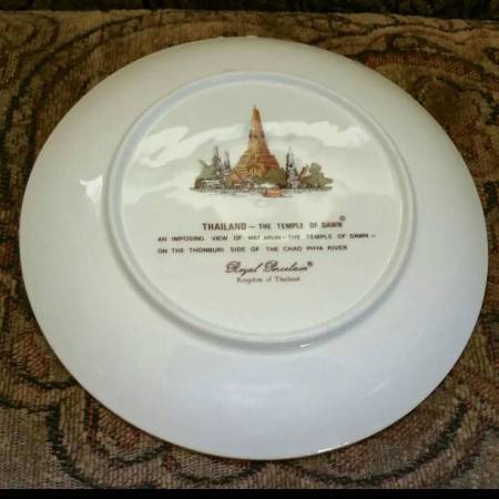 Thailand Souvenir / Collector's Plate - "Royal Porcelain", Wat Arun, Temple of the Dawn (Located in Bangkok, adjacent to the Chao Phyra River). 8-1/2 inches in diameter. Purchased in Bangkok and brought over by a relative years ago. No chips, cracks or damage. New condition.
