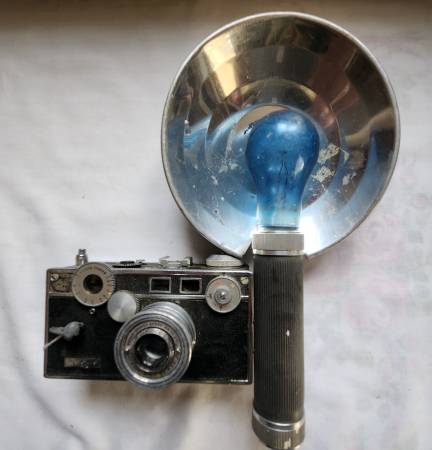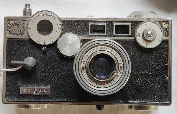 Argus C3 Brick 35mm Film Rangefinder Camera with flash gun attachment.