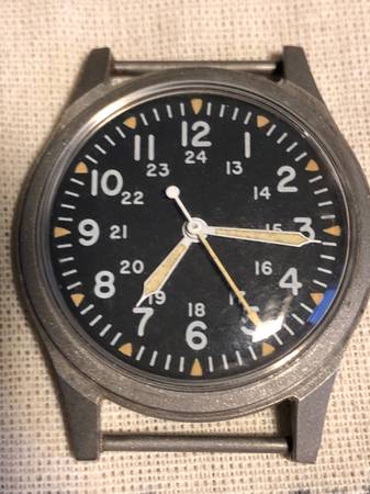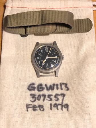 Original military issue pilots watch 17 jewels working condition dated Feb 1979 military contract GGW113. Hack feature