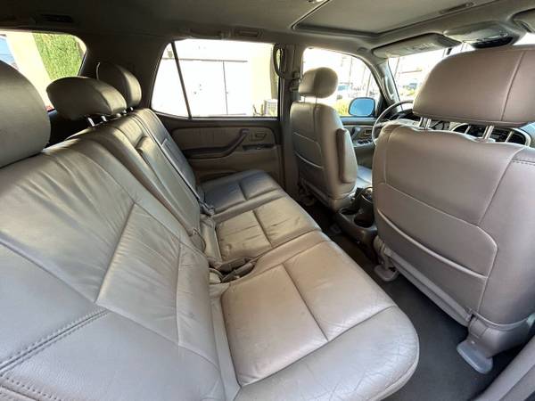 ALL ORIGINAL WELL MAINTAINED CLEAN 2002 TOYOTA SEQUOIA LIMITED 4-DOOR SUV 4.7 V8 AUTO LOADED WHITE ON GRAY LEATHER INTERIOR A/C PS PB TILT CC DUAL POWER SEATS THIRD SEAT ALLOY WHEELS TOW PACKAGE JUST SERVICED RUNS AND DRIVES GREAT CLEAN TITLE FOR MORE INFO PLEASE GIVE US A CALL AT 626-966-3858...YOU CAN VIEW OUR ENTIRE INVENTORY AT CALIFORNIAMOTORCARSONLINE.COM...ADDRESS 953 N CITRUS AVE COVINA CA 91722