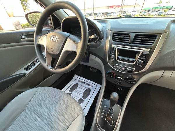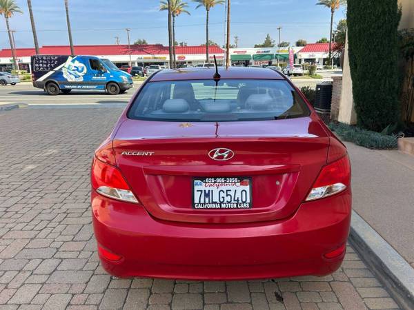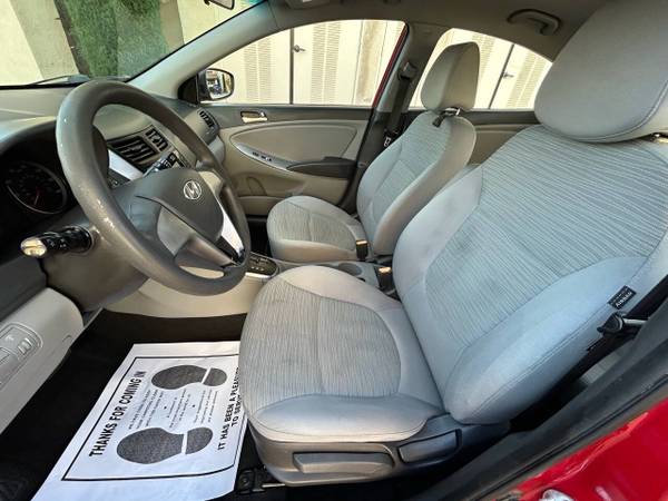 VERY CLEAN 2016 HYUNDAI ACCENT SE SEDAN 4-CYLINDER 1.6 LITER AUTOMATIC WITH POWER PACKAGE MEDIA USB RED ON GRAY INTERIOR XLNT FUEL ECONOMY JUST SERVICED RUNS AND DRIVES GREAT CLEAN TITLE A MUST SEE CAR FOR MORE INFO PLEASE GIVE US A CALL AT 626-966-3858....YOU CAN VIEW OUR ENTIRE INVENTORY AT CALIFORNIAMOTORCARSONLINE.COM...ADDRESS 953 N CITRUS AVE COVINA CA 91722