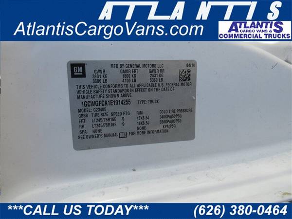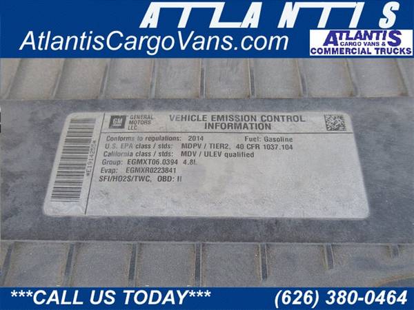 Why buy from Atlantis ? We have Multi-Point Inspection and Goodwill 30 Day Warranty on all our trucks and vans. We have been selling quality trucks and vans since 1990. You are looking at a 2014 Chevrolet Express 2500 Cargo Van miles, AM/FM Stereo ,Air Conditioning. Stock: 10788 Vin: 1GCWGFCA1E1914255
