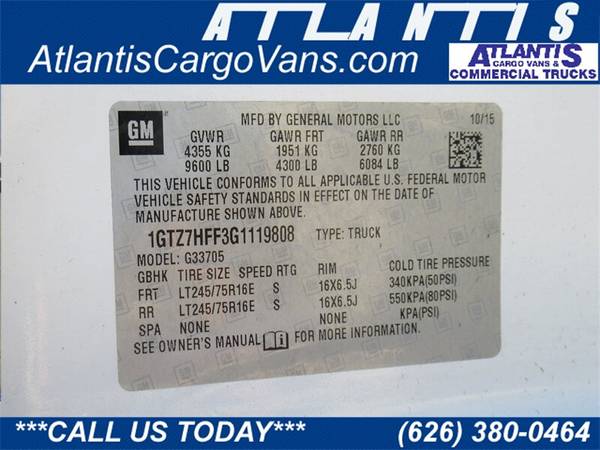 Why buy from Atlantis ? We have Multi-Point Inspection and Goodwill 30 Day Warranty on all our trucks and vans. We have been selling quality trucks and vans since 1990. You are looking at a 2016 GMC Savana 3500 Reefer Cargo Van Extended Cargo Van 101,992 miles, AM/FM Stereo ,Air Conditioning. Stock: 10776 Vin: 1GTZ7HFF3G1119808
