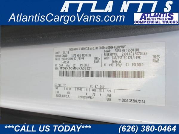 Why buy from Atlantis ? We have Multi-Point Inspection and Goodwill 30 Day Warranty on all our trucks and vans. We have been selling quality trucks and vans since 1990. You are looking at a 2018 Ford Transit 150 Wheelchair Van Medium Roof 130 WB 53,173 miles, AM/FM Stereo ,Air Conditioning. Stock: 10743 Vin: 1FDZK1CM0JKA38321