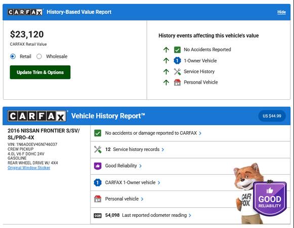 2016 Nissan Frontier Pro-4X - 4x4 - 1 Owner Clean title and Carfax - California Truck - Only 58K Miles - Lifted 4.0 V6 Engine - 6 Speed Manual Transmission - Upgraded 17” KMC XD Wheels - with Falken Wildpeak A/T Tires - Grill Guard with LED off-road lights - Running Boards - Rhino Rack locking Roof Rack - Soft Topper Camper - Dual Exhaust System - Keyless Entry - Heated Seats - Traction Control - Parking Sensors - Back up Camera - Bluetooth - Nissan Connect - USB - Aux - Cargo Lamp - Cruise Control - Wheel Controls - Voice Command - Drives Excellent - Lots of Power - Inspected - Smogged and Comes with a Free 90 Days or 3000 Miles Warranty. Great Truck - Low Miles - Our Price: $19900. Financing Available - Trade ins Welcome. We are located in Rosemead close to El Monte and Pasadena. Call me if you like to see and test drive it at (51O) 461-3O41. Thanks