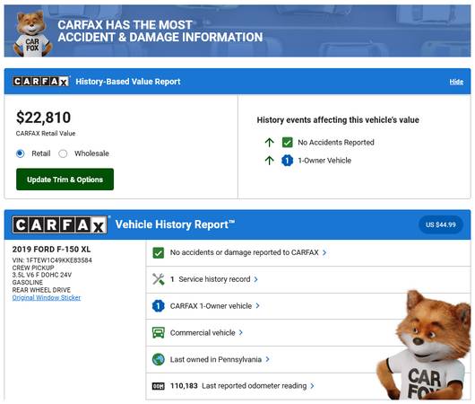$2500 Down!!!!!! 2019 Ford F-150 - Crew Cab - Clean title 1 Owner Clean Carfax - 3.3 V6 - 6.5 ft Bed -110K Miles - Seats 6 people - Bed liner - Bluetooth - Back up Camera- Wheel Controls - Voice Command - USB - AUX - Power locks - Power Mirrors - Power Windows - Keyless Entry - Cruise Control - Traction Control - Foldable rear seats - The truck is in excellent physical and mechanical condition, Fresh Oil Change and Transmission Service - New Tires and Windshield - inspected, Smogged, and comes with a FREE 90 days or 3000 miles Warranty. Our price: $18900!!! Financing available, Trade ins Welcome. Located in Rosemead Ca. Contact me if you like to see it at 51O 461-3O41. Thanks